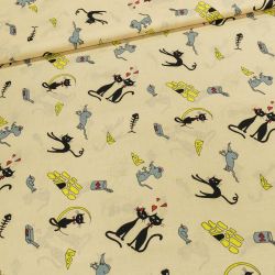 - Bavlněné plátno dětské kočky a myši na okrové, š.160cm (látka v metráži)157 Kč