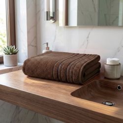 - Froté osuška ZARA, tmavě hnědá s proužkovanou bordurou, 70x140cm320 Kč