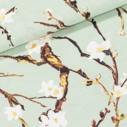 - Směsové plátno 603030 CHERRY BLUE, bílé třešňové květy na mentolové, š.140cm (látka v metráži)194 Kč