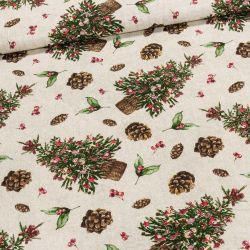 - Směsové plátno vánoční 513030 UNICO ESTELIA, vánoční stromeček a šišky na režné, š.140cm (látka v metráži)191 Kč