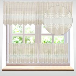 - Vitrážová záclona, polyesterový batist 27027, REŽNÁ, vyšívané ornamenty s tylem, s bordurou, (více výšek, v metráži)Od 307 Kč