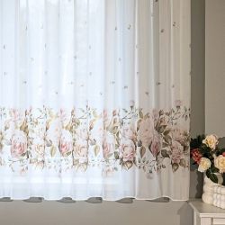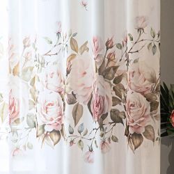 - Voálová záclona RŮŽE, růžová na bílé, s olůvkem, (více výšek, v metráži)Od 250 Kč