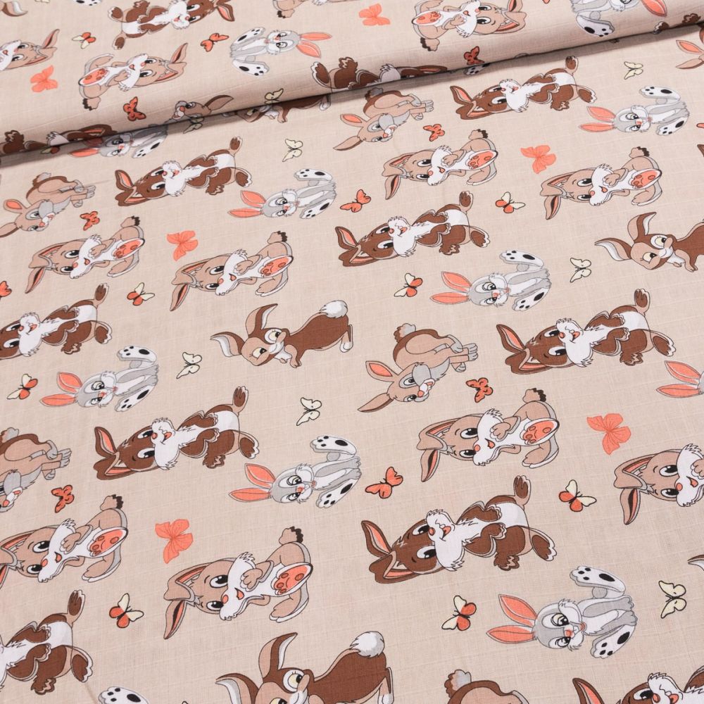 Bavlněná plenkovina ZAJDA, zajíčci na béžové, š.160cm (látka v metráži)