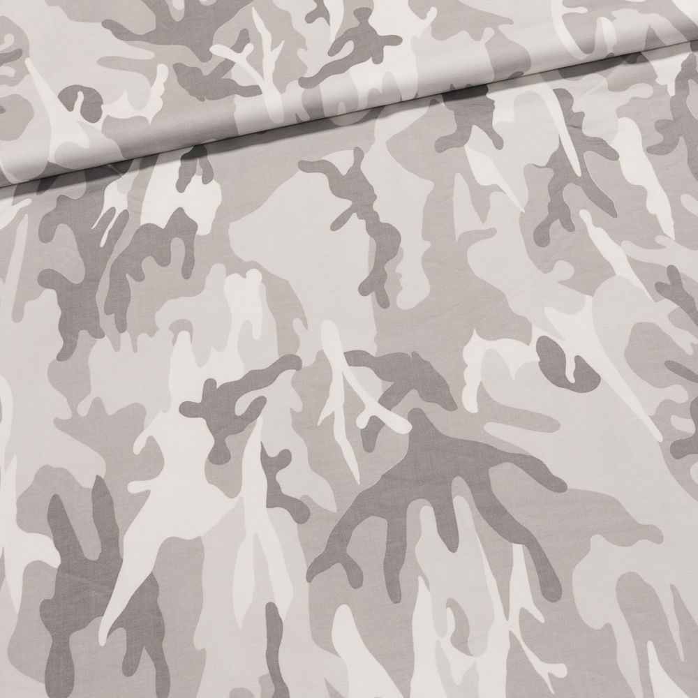 Bavlněná riflovina / bavlněný satén (denim, džínovina) J-2101/4 světle šedý maskáčový vzor, š.135cm (látka v metráži)