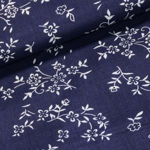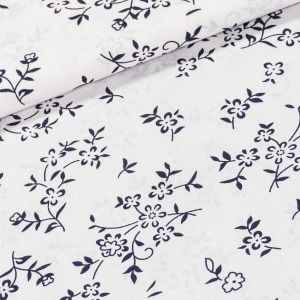 Bavlněná látka (tkanina) se vzorem vínových květinek na bílém podkladu. Látka je v šířce 140 cm, vyrobena ze 100% bavlny (gramáž 125g/m2) v plátnové vazbě. Vzor látky je natištěn jen z jedné strany.