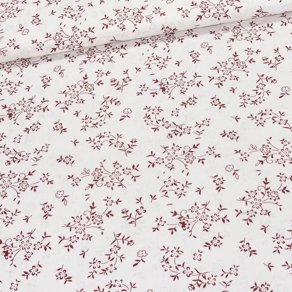Bavlněné plátno 303000/23, vínové květinky na bílé, š.140cm (látka v metráži)