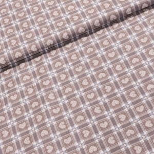Bavlněná látka (tkanina) se vzorem červených srdíček a puntíků na smetanovém podkladu. Látka je v šířce 160 cm, vyrobena ze 100% bavlny (gramáž 135g/m2) v plátnové vazbě. Vzor látky je natištěn jen z jedné strany z druhé strany je látka bez potisku.