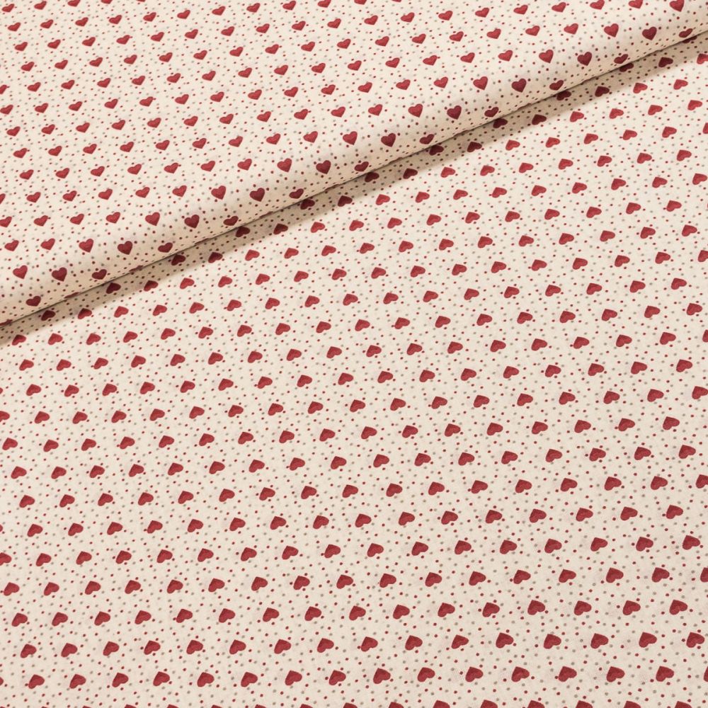 Bavlněné plátno 4386/001 červená srdíčka a puntíky na smetanové, š.160cm (látka v metráži)