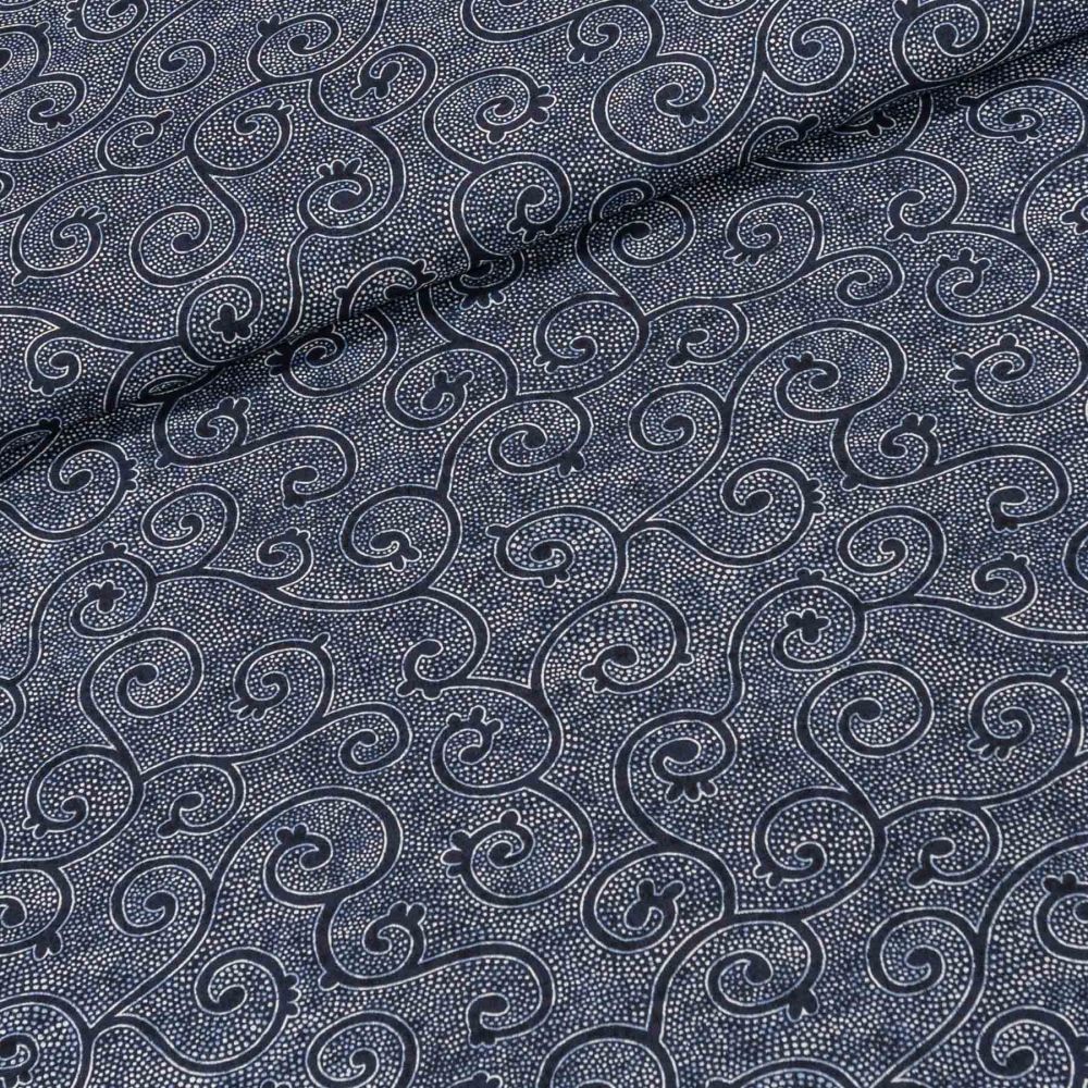 Bavlněné plátno 4988/001, tečkovaný ornament na tmavě modré š.160cm (látka v metráži)