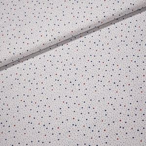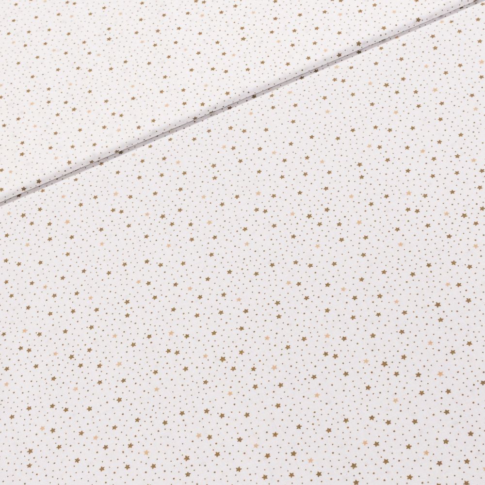 Bavlněná látka (tkanina) se vzorem béžových drobných hvězdiček na bílém podkladu. Látka je v šířce 160 cm, vyrobena ze 100% bavlny (gramáž 135g/m2) v plátnové vazbě. Vzor látky je natištěn jen z jedné strany z druhé strany je látka bez potisku.