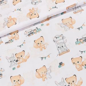 Bavlněné plátno dětské 7027, JURSKÝ PARK, dinosauři na bílé, š.150cm (látka v metráži)