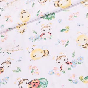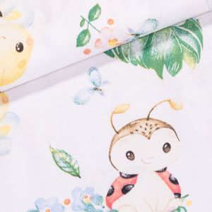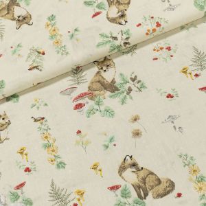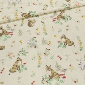 Bavlněná látka (tkanina) se vzorem různých druhů exotických zvířátek na smetanovém podkladu. Látka je v šířce 160 cm, vyrobena ze 100% bavlny (gramáž 135g/m2) v plátnové vazbě. Vzor látky je natištěn jen z jedné strany z druhé strany je látka bez potisku.