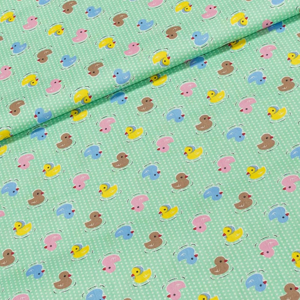 Bavlněné plátno dětské kačenky na světle zelené, š.160cm (látka v metráži)