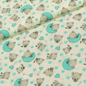 Bavlněné plátno dětské zvířátka a srdíčka na béžové, š.140cm (látka v metráži)