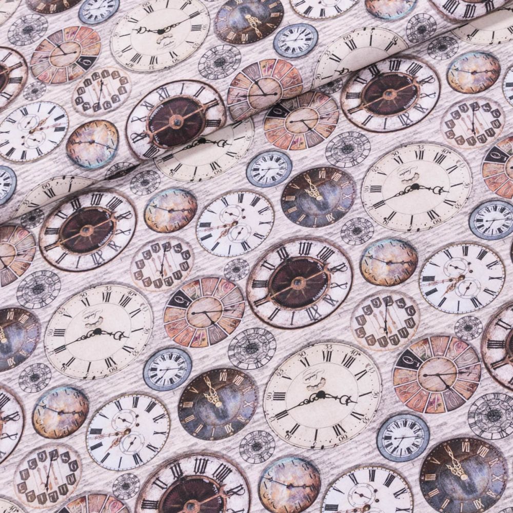 Bavlněné plátno FIGURATIVE 50 UNICO, hodiny, hnědá, š.150cm (látka v metráži)
