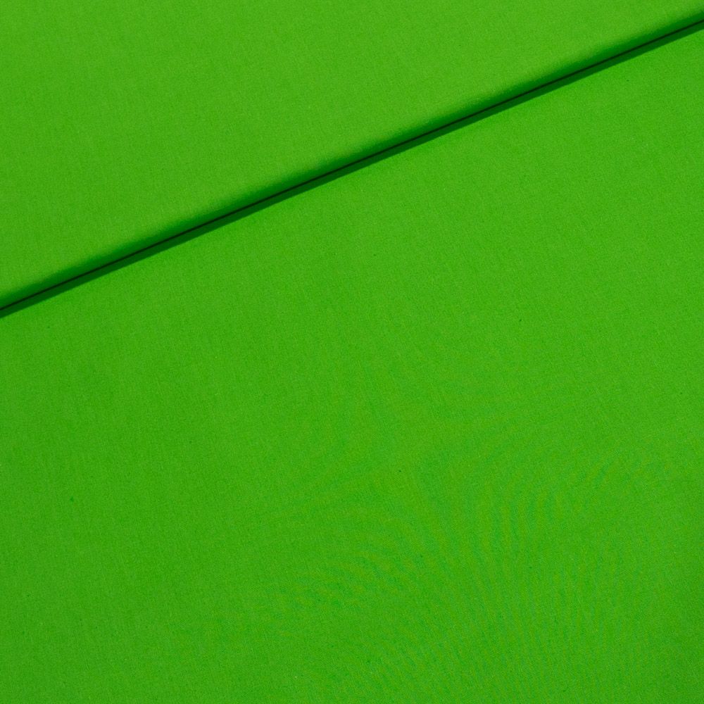 Bavlněná látka (tkanina) v jednobarevné zelené barvě. Látka je v šířce 160 cm, vyrobena ze 100% bavlny (gramáž 135g/m2) v plátnové vazbě a je z obou stran stejná.