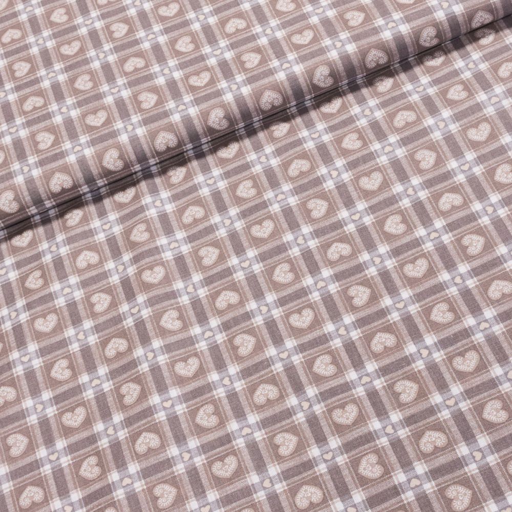 Bavlněné plátno LGB 431002 srdíčka ve světle hnědém káru, š.150cm (látka v metráži)