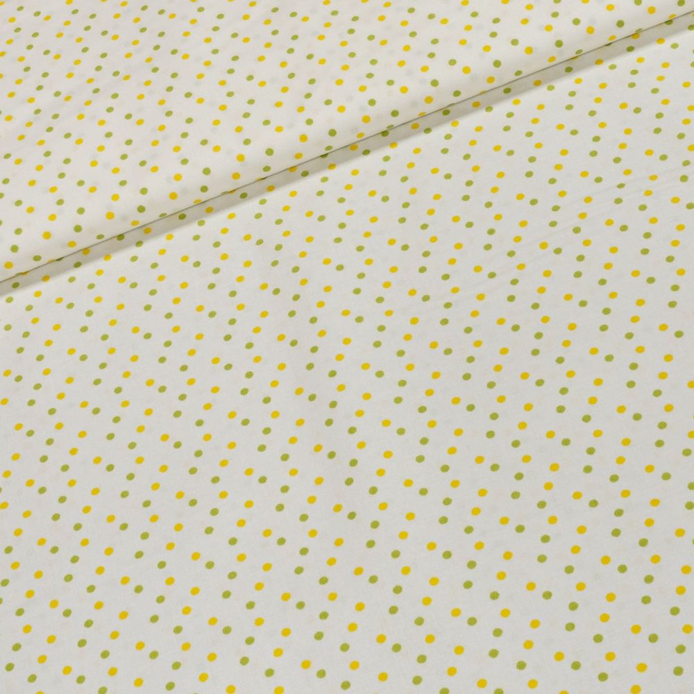 Bavlněné plátno MATY 1586404/22 žlutý a zelený puntík na bílé, š.140cm (látka v metráži)