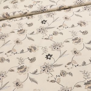 Bavlněná látka (tkanina) se vzorem červených tulipánů na smetanovém podkladu. Látka je v šířce 140 cm, vyrobena ze 100% bavlny (gramáž 135g/m2) v plátnové vazbě. Vzor látky je natištěn jen z jedné strany z druhé strany je látka bez potisku.