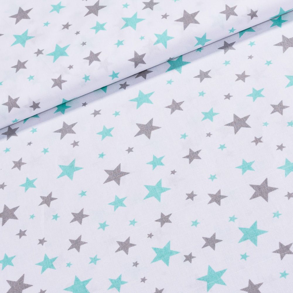 Bavlněné plátno POLO zelené a šedé hvězdy na bílé, š.160cm (látka v metráži)