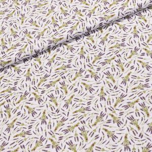 Bavlněná látka (tkanina) se vzorem drobných kytiček s béžovými lístky na smetanovém podkladu. Látka je v šířce 140 cm, vyrobena ze 100% bavlny (gramáž 135g/m2) v plátnové vazbě. Vzor látky je natištěn jen z jedné strany z druhé strany je látka bez potisku.