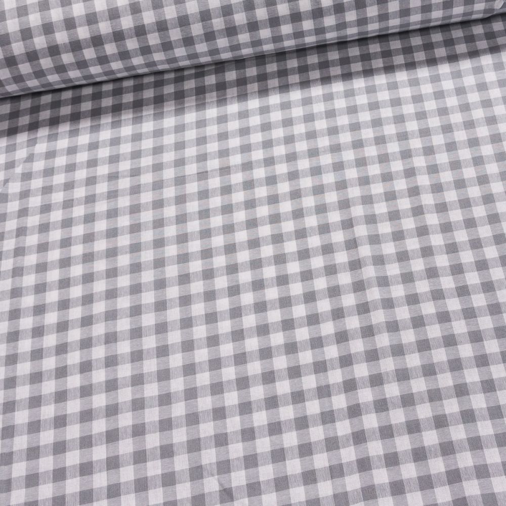 Pravý bavlněný šedý čtverečkovaný kanafas. Látka je v šířce 140 cm, vyrobena ze 100% bavlny (gramáž 140g/m2) v plátnové vazbě. Vzor látky je vytkávaný je tedy z obou stran stejný.