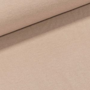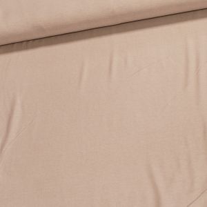 Elastický úplet (jersey) se vzorem bílých puntíků na karamelovém podkladu, který je vhodný na trička, mikiny, elasťáky, šaty, sukně, kardigany. Látka je v šířce 160 cm, vyrobena z 95% bavlny a 5% elastanu (gramáž 200g/m2). Látka má vzor jen z jedné strany, z druhé strany je bez potisku.