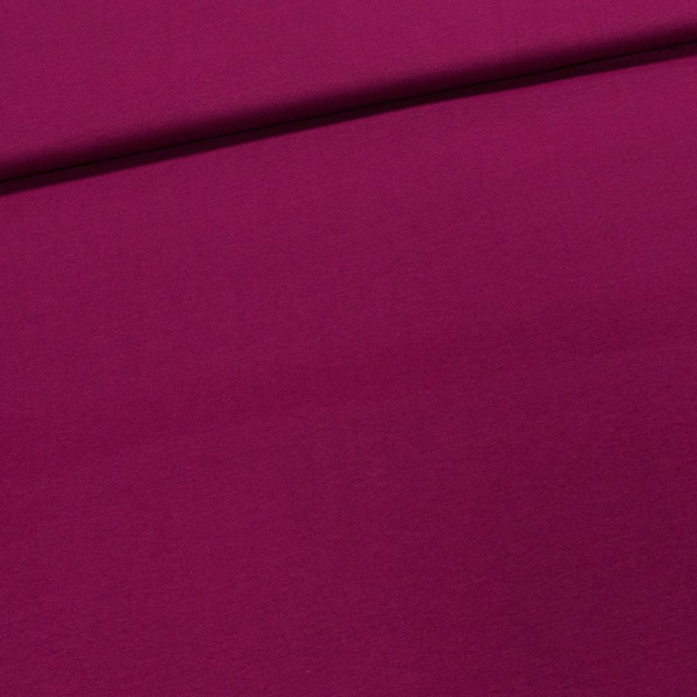 Elastický bavlněný úplet (jersey) v jednobarevné ostružinové barvě. Je vyroben z 95% bavlny a 5% elastanu (gramáž 240g/m2). Látka je v šířce 180 cm, je vhodná na výrobu mikin, tepláků, nákrčníků, čepic či šatů a je z obou stran stejná.