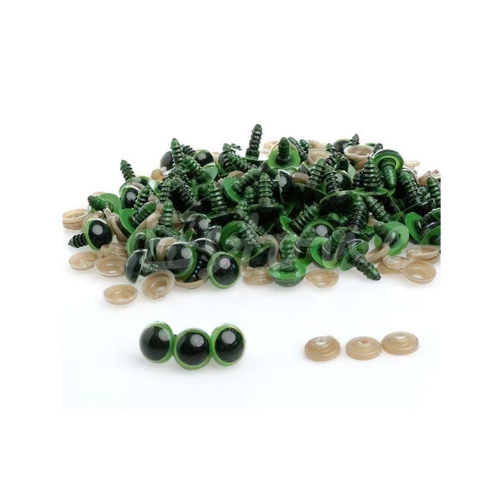 Bezpečnostní oči z tvrzeného plastu v jednobarevné zelené barvě s průměrem 10mm. Oči jsou vhodné pro výrobu hraček, dekorací a další doplňky. Díky bezpečnostní zarážce proti vypadnutí jsou oči odolnější vůči vytrhnutí nebo sloupnutí z výrobku. Cena je za 1ks včetně zarážky. Objednávat lze pouze jako pár (2ks).