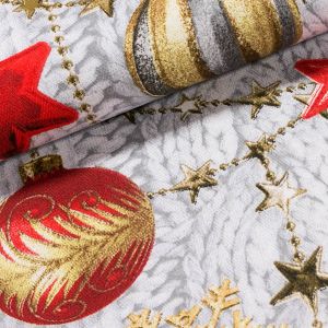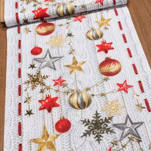 - Bavlněné plátno vánoční / štola na metráž 503024 30044, šedé hvězdy a červené dekorace na šedé pletenině, š. 50cm (látka v metráži)127 Kč
