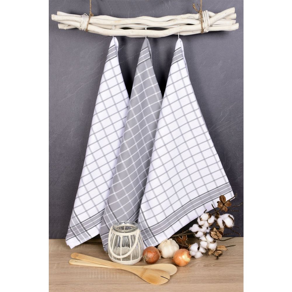 Kuchyňské utěrky EGYPTSKÁ BAVLNA CHIONE, šedá kostka, 3 kusy, 50x70cm