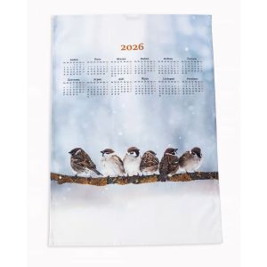 - Textilní kalendář, utěrka VRABČÁCI 2026, světle šedý, 50x70cm, bez hůlky201 Kč