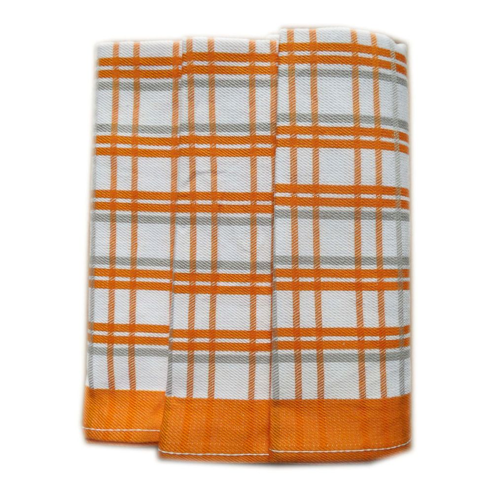 Souprava tří kusů kuchyňských utěrek z exkluzivní egyptské bavlny v rozměru 50x70cm v oranžovo bílé barvě se vzorem kára.