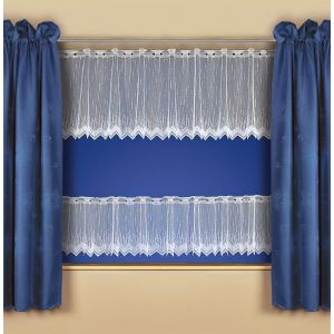 - Vitrážová záclona, polyesterový batist V309 vyšívaný proužek s vlnkou, s bordurou, bílá (více výšek, v metráži)Od 226 Kč