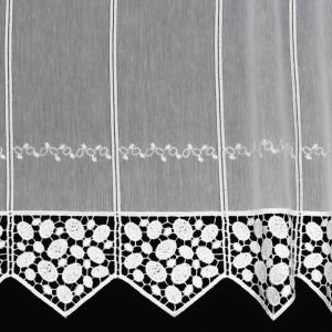- Vitrážová záclona, polyesterový batist V593 vyšívané květy, s bordurou, bílá (více výšek, v metráži)Od 219 Kč