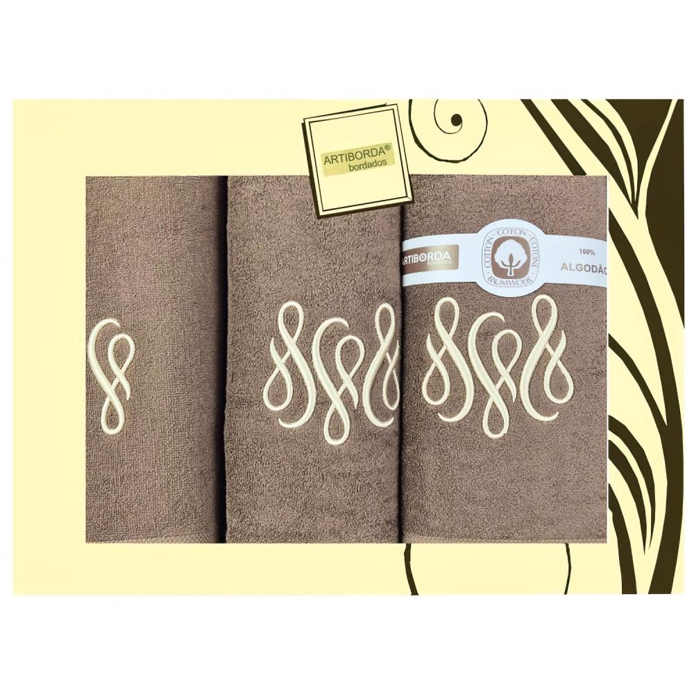 Dárkový set froté ručníků a osušek 94, 3-dílný, hnědá s výšivkou, 1x 30x50cm + 1x 50x90cm + 1x 70x140cm