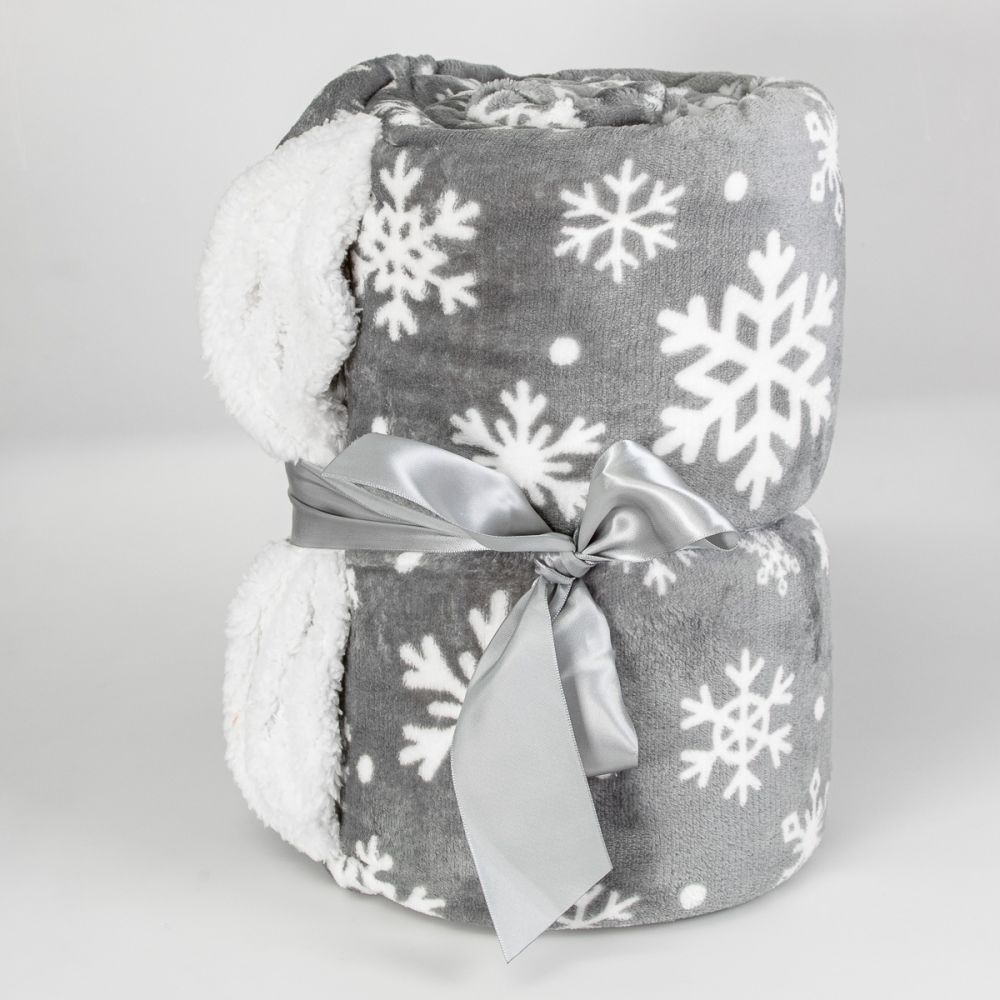 Deka z mikrovlákna PRINT BERÁNEK šedá s vločkami, 150x200cm