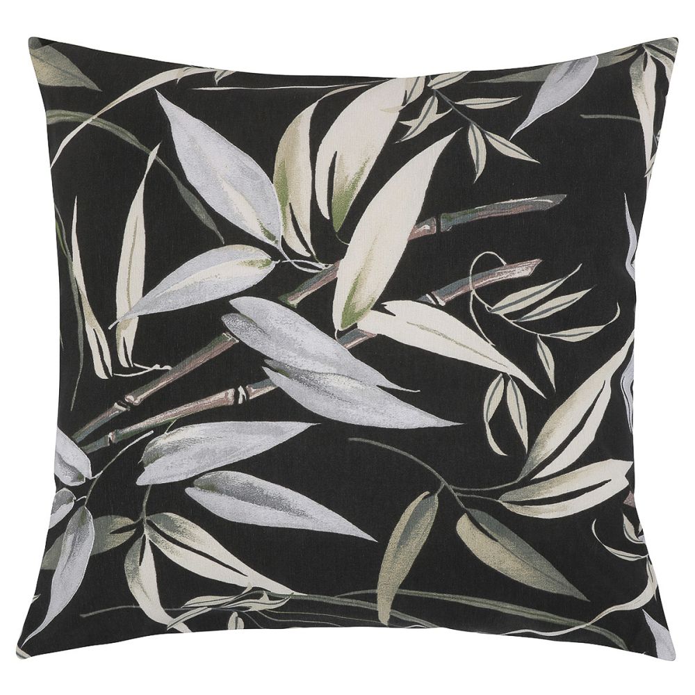 Dekorační polštářek s motivem bambusových listů na černém podkladu. Polštářek je z obou stran stejný. Povlak na polštářek je vyroben ze 70% bavlny a 30% polyesteru a výplň je tvořena ze 100% Polyesteru (kuličky z dutého vlákna). Vnitřní výplň je možné vyjmout a prát povlak samostatně.