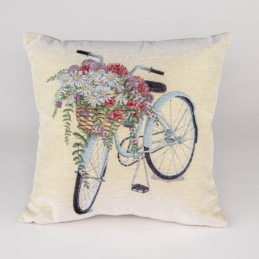 Dekorační polštářek / povláček RETRO BIKE, květiny a kolo, modrá, 45x45cm