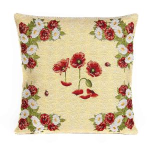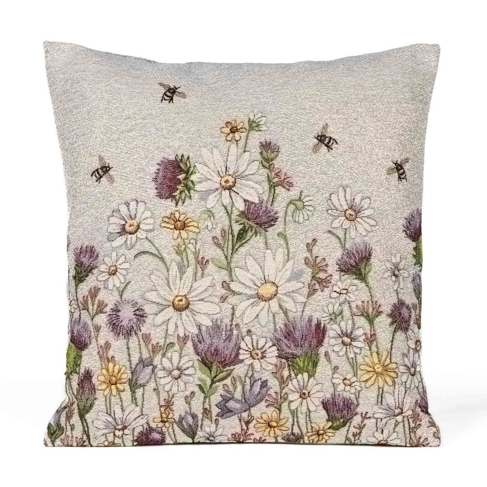 Dekorační povlak na polštářek v retro provedení z hustě tkané látky (gobelín) s vysokou gramáží se vzorem jetele, kopretin a včeliček na režném podkladu v rozměru 45 x 45 cm. Vzor na povlaku je oboustranný. Povlak na polštářek je vyroben ze 70% polyesteru a 30% bavlny. Zapínání na ZIP. Povlak je možné objednat samostatně bez výplně, s levnější dekorační výplní nebo luxusnější výplní na spaní.