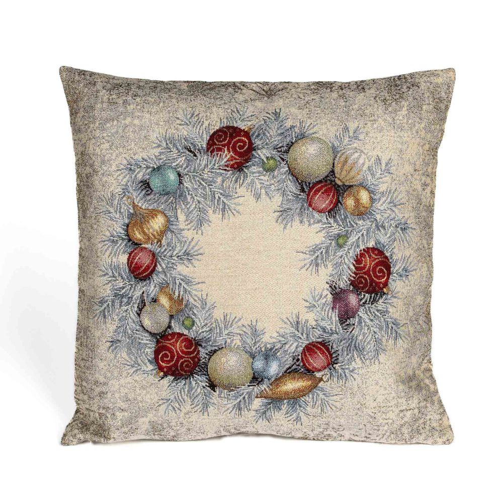 Dekorační polštářek / povláček vánoční RETRO MODRÝ VĚNEČEK S BAŇKAMI, s lurexem 45x45cm