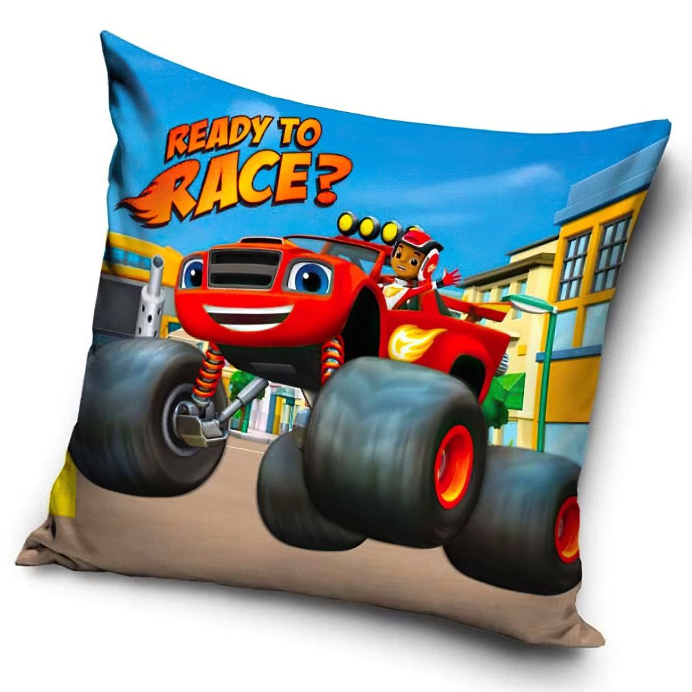 Dětský povlak na polštářek s hlavními hrdiny dětského seriálu Plamínek a čtyřkoláci na modrém podkladu. Povlak na polštářek je v rozměru 40x40cm, má zapínání na ZIP a je vyroben z měkkého a hladkého veluru 100% polyesteru (190 g/m2). Povlak je možné objednat samostatně bez výplně, s levnější dekorační výplní nebo luxusnější výplní na spaní.