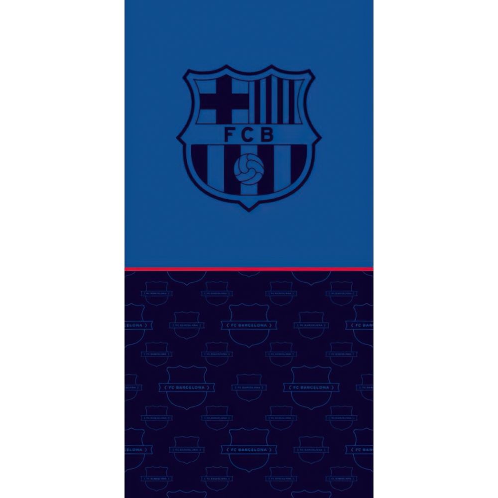 Fotbalová plážová osuška s logem týmu FC Barcelona a kostkovaným vzorem po stranách. Osuška je z lícové strany s logem týmu na modré, po rubu má jemné froté smyčky bez potisku v bílé barvě. Osuška je vyrobena ze 100% bavlny s gramáží 320g/m2.