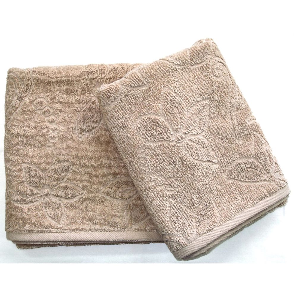 Froté ručník (50x100cm) a osuška (70x140cm) v béžové barvě s vytkávaným květinovým vzorem. Ručníky a osušky jsou vyrobeny z vysoce kvalitní 100% bavlny s vysokou gramáží, díky čemuž jsou velmi hebké, savé a mají nadýchaný vzhled. Vyrobeny jsou v gramáži 500g/m2.