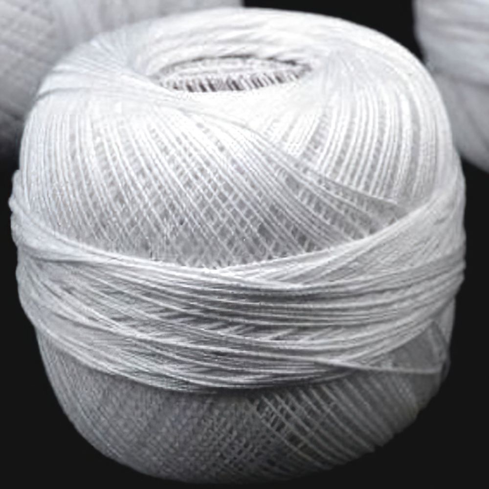 Bavlněná háčkovací / paličkovací příze (100% bavlna) v jednobarevné bílé barvě. Příze jsou určeny pro háčkování deček, přehozů, záclon, apod. Příze je také vhodná pro paličkování.