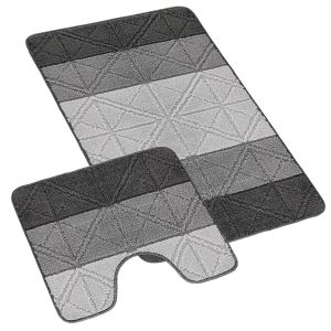 Souprava koupelnové předložky a předložky před WC v různých rozměrech. Předložky mají krátký chlup s reliéfním vzorem. Díky použitému materiálu je povrch předložek hebký a krásně měkoučký. Na podlaze nekloužou díky latexovému nátěru ze spodní strany. Potěší Vás také snadná údržba, bez problémů je vyperete v pračce na 30°C. Buďte bez obav, předložky neztrácí tvar ani barvu!