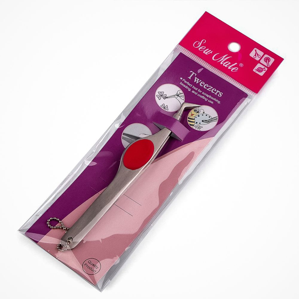 Pinzeta se zahnutou špičkou je praktickým pomocníkem ke každému šicímu stroji, díky silikonovým úchytkám se dobře drží. Můžete ji využít k vytahování nití i k práci s látkou. Ostrou špičkou uchopíte a přidržíte i ten nejmenší kousek látky. Pinzetu využijete také při tvoření s papírem v technice quilling a další.