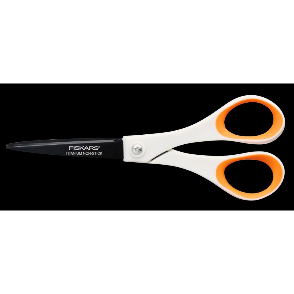 Univerzální krejčovské nůžky s titanovou úpravou s celkovou délkou 18cm, jsou ideální pro střihání lepivých materiálů či elektrostatických materiálů, jako jsou například látky. Čepele mají nepřilnavý povrch, který zabraňuje nalepení většiny samolepek a lepících pásek, statika u těchto nůžek je nulová a nemůže tedy přilnout k čepeli. V případě, že zvolíte jeden účel použití nůžek - například pro stříhání látek čepele z nerezové oceli zůstávají dlouho ostré. Ergonomicky tvarované rukojeti s povrchem Softgrip zlepšují pohodlí a ovládání nůžek. Univerzální nůžky Fiskars Titanium Non-Stick™ jsou určené pro praváky.