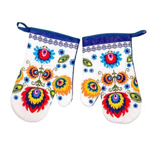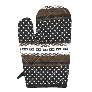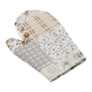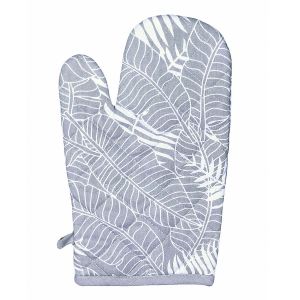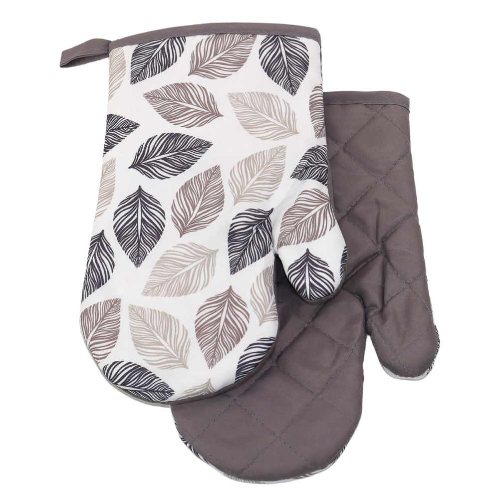 Kuchyňská chňapka (rukavice) se vzorem listů. Z vnitřní strany je chňapka jednobarevná v béžové barvě. Chňapka má našité poutko na zavěšení i uvnitř všitý magnet. Chňapka je v rozměru 27x18cm a je vyrobena ze 100% polyesteru s výplní ze 100% polypropylenu. Balení obsahuje 2 kusy chňapek na levou a pravou ruku.