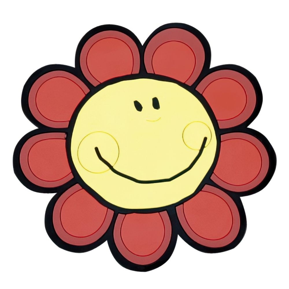 Praktická nerozbitná, omyvatelná kuchyňská podložka pod horký hrníček, je vyrobena z velmi odolného 100% PVC v rozměru 10x10cm s motivem červené smějící se květinky.